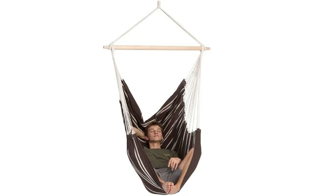 Usiamo lo stesso tessuto solido dell’amaca Gigante XXXL, steso con un gigantesco palo di legno di 1,40 m, la cui tornitura brevettata (più spessa all’interno che all’esterno) impedisce alle corde di scivolare verso l’interno.