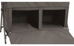 L’armadio da campeggio pieghevole Aruba in grigio con 4 scomparti e 2 scomparti in rete è ideale per riporre gli accessori da campeggio. La porta robusta e ribaltabile con maniglia offre uno spazio di stoccaggio spazioso e utilizzabile proprio come a casa. La porta è dotata di una serratura magent. Sul lato c’è anche un pratico organizer e un gancio per appendere le cose. L’armadietto da campeggio può essere usato da solo o insieme al Neat´n´Tidy Organiser. Include una borsa da trasporto per una facile conservazione e trasporto.