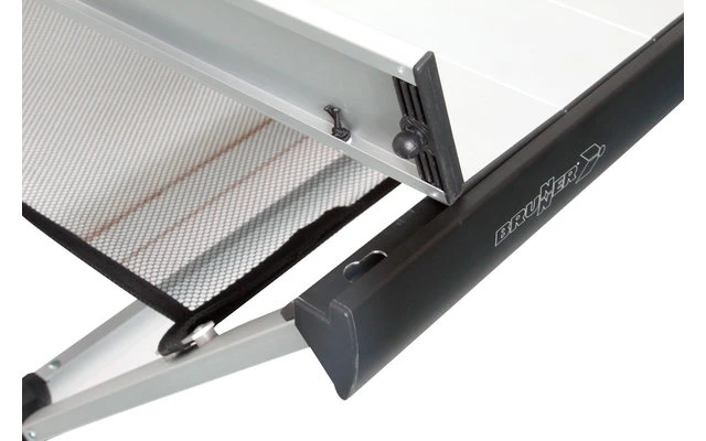 Il nuovo tavolo arrotolabile Accelerate con rete da tavolo si è conquistato la reputazione di uno dei tavoli da campeggio più leggeri, versatili e portatili. Il telaio di base pieghevole e il piano del tavolo senza fessure con un nuovo sistema di fissaggio assicurano un montaggio facile e veloce. Nuovo telaio in tubi di alluminio semi-ovali. Con pratico ripiano a retee borsa per il trasporto (100 % poliestere).