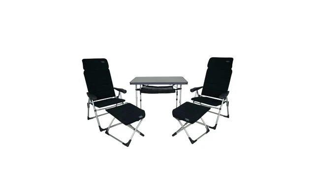 Set composto da 2 sedie AA/213-AECAir-Elite Compact con poggiapiedi abbinato, tavolo AA/246, una rete portaoggetti e una borsa da trasporto. Ideale per 2 persone. Molto compatto, facile da trasportare. Borsa da trasporto inclusa! Quando è piegato, questo set ha un diametro di soli 26 cm.