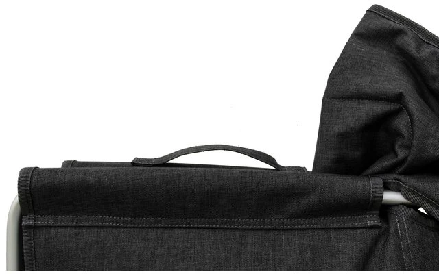 Un anello attaccato alla sedia rende facile il carico e lo scarico. Il sedile extra largo e lo schienale rialzato offrono una sensazione di seduta molto confortevole. Il pratico tavolo pieghevole è dotato di un portabibite.