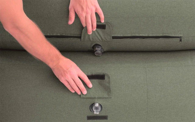 Il divano gonfiabile Aberdeen Lake è particolarmente comodo e ha una piccola dimensione di imballaggio. Il colore verde scuro, i braccioli arrotondati e lo schienale vi invitano a rilassarvi. Druch il semplice funzionamento della valvola è un rapido set up possibile.