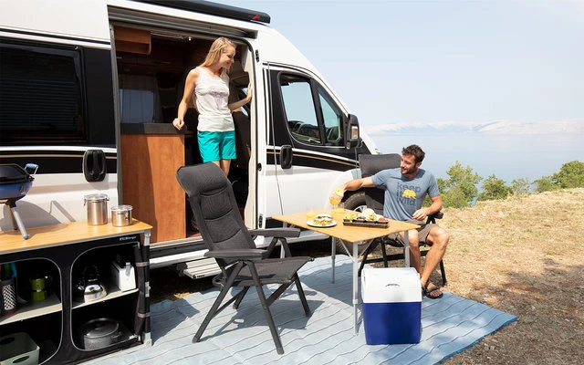 Estremamente salvaspazio con il poggiatesta doppiamente ripiegabile (20 cm in meno di ingombro rispetto a sedie simili). La sedia è molto stabile grazie al telaio extra forte in Duralite e ai braccioli rinforzati in alluminio. L’imbottitura della testa regolabile in spessore, la tecnologia Ergo-Shell (sedile e schienale ergonomici) e il tessuto in fibra DuraDore 3D ad asciugatura rapida e traspirante garantiscono un piacevole comfort di seduta.